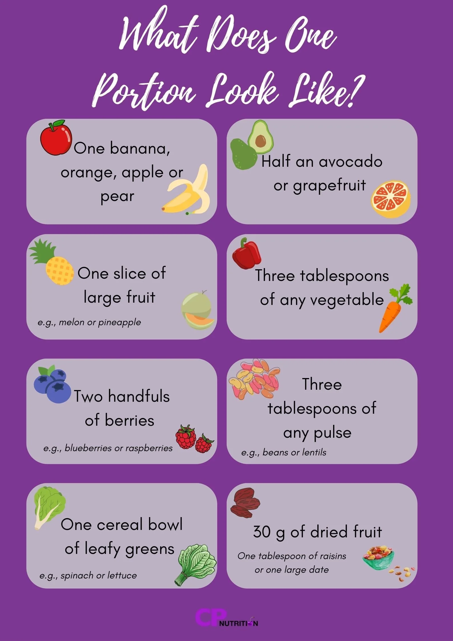 Well, one portion of fruits and veggies is around 80 grams which could look like any of the following (4):